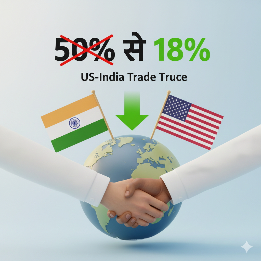 भारत की बड़ी जीत: ट्रंप ने बिना शर्त टैरिफ 50% से 18% किया। हाल ही में अमेरिकी राष्ट्रपति डोनाल्ड ट्रंप ने भारत के खिलाफ व्यापारिक टैरिफ को लेकर अपने सख्त रवैये में नरमी दिखाई है। इसे कूटनीतिक गलियारों में एक बड़े “यू-टर्न” के रूप में देखा जा रहा है। ट्रंप ने घोषणा की है कि वह भारतीय सामानों पर टैरिफ (आयात शुल्क) को कम करेंगे। इस घटनाक्रम ने कई सवाल खड़े किए हैं, विशेष रूप से “18%” के आंकड़े और इसके पीछे की असली वजहों को लेकर।