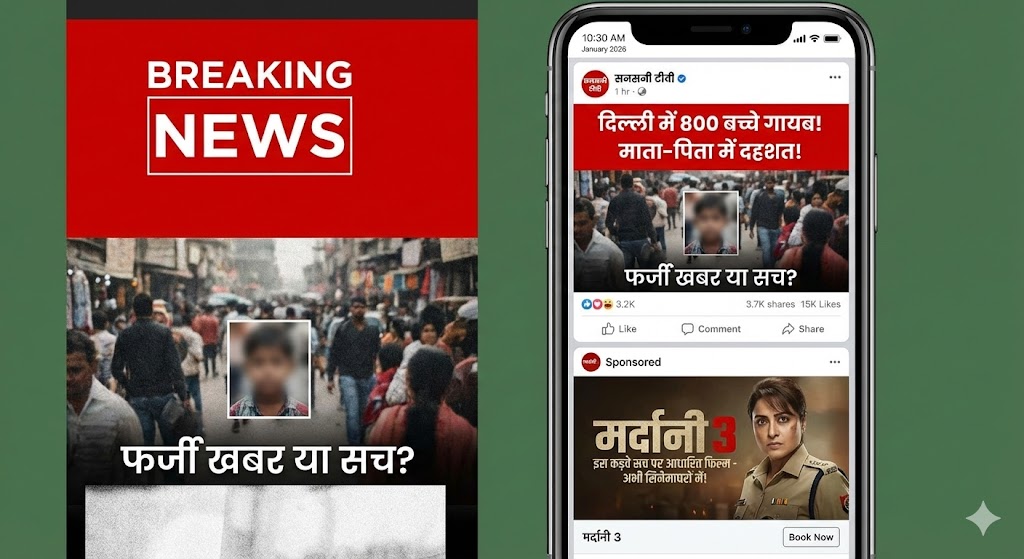इसका सबसे ताज़ा उदाहरण January 2026 में भारत में देखने को मिला। X और Instagram जैसे प्लेटफॉर्म पर अचानक ऐसे वीडियो और पोस्ट की बाढ़ आ गई, जिनमें दावा किया गया कि Delhi में साल के पहले कुछ हफ्तों में ही 800 से ज्यादा बच्चे गायब हो गए हैं। इसी तरह की अफवाहें Mumbai को लेकर भी फैलाई गईं कि वहां 36 दिनों में 82 बच्चे लापता हुए हैं। इन आंकड़ों ने माता-पिता के मन में गहरा डर पैदा कर दिया और आम जनता में गुस्सा भर दिया। सोशल मीडिया पर missing जैसे हैशटैग ट्रेंड करने लगे और लोगों ने बिना सच्चाई जाने इन पोस्ट्स को शेयर करना शुरू कर दिया।