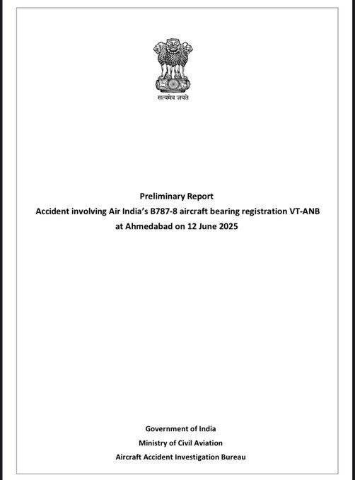 India’s AAIB has released its Preliminary Report into the crash of AI flight 171:
