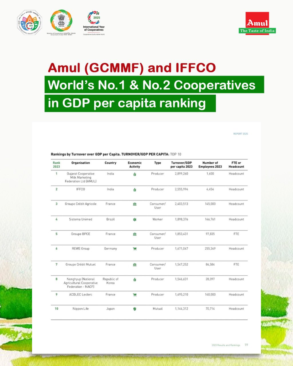 #Amul & IFFCO Leads India To The Top of Global Cooperatives!