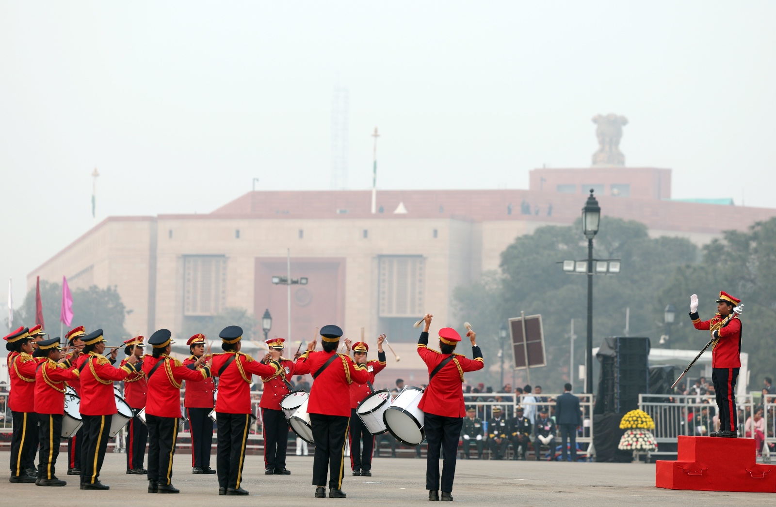 This grand event takes place at Vijay Chowk, between Rashtrapati Bhavan and India Gate, presided over by the President as the supreme commander. Bands from the Indian Army, Navy, Air Force, Delhi Police, and Central Armed Police Forces (CAPF) perform patriotic tunes in perfect synchronization.