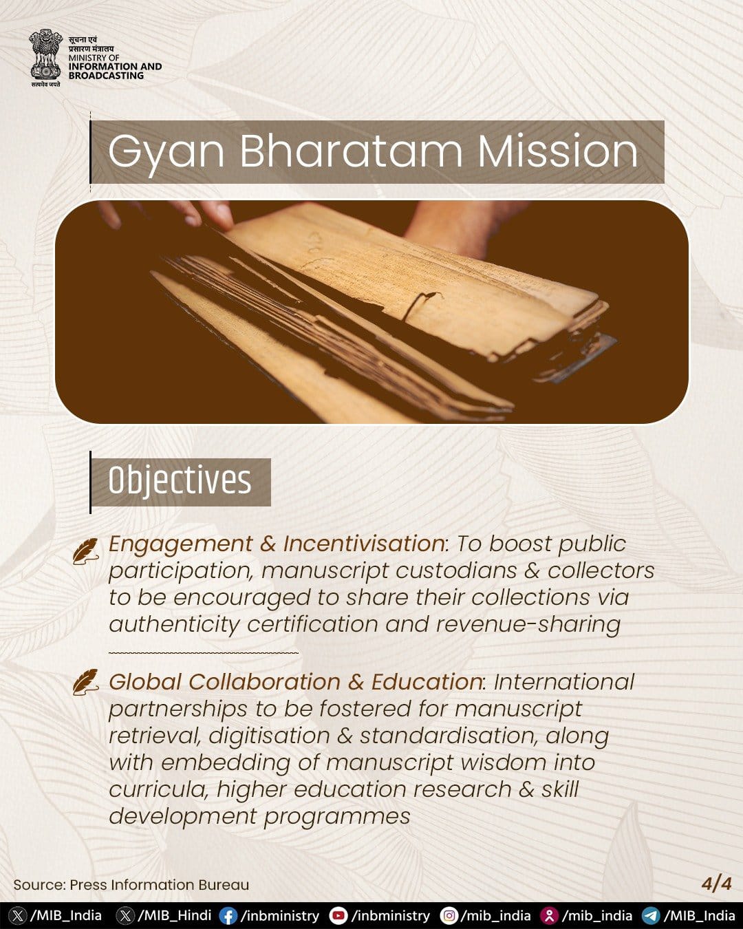 To safeguard this invaluable heritage and assert India’s knowledge leadership globally, the Government of India announced the Gyan Bharatam Mission (GBM) in the Union Budget 2025–26, reviving and expanding the vision of the National Mission for Manuscripts (NMM) launched in 2003 by then PM Late Shri Atal Bihari Vajpayee.