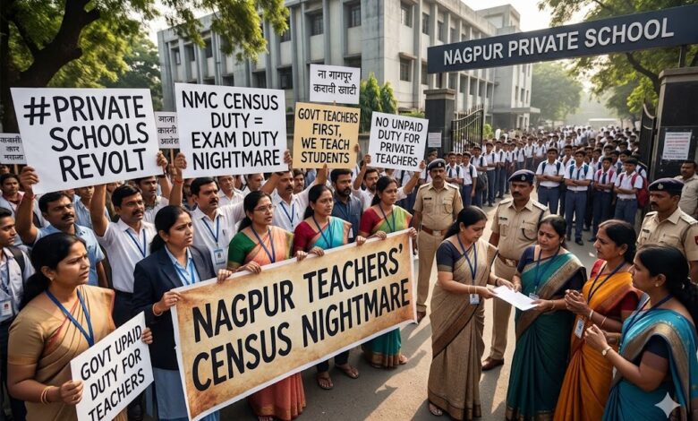 Nagpur Teachers’ Census Nightmare #PrivateSchoolsRevolt. School associations and teacher unions in Nagpur are protesting the Nagpur Municipal Corporation’s (NMC) directive to deploy private unaided school teachers for Census 2026-27 duties, questioning why thousands of government teachers aren’t prioritized first. NMC has issued FIRs against non-compliant staff, including a CBSE school headmistress, under the Census Act, 1948, and IPC Section 187.