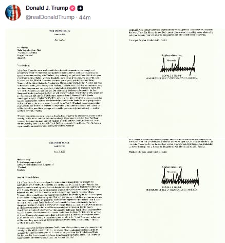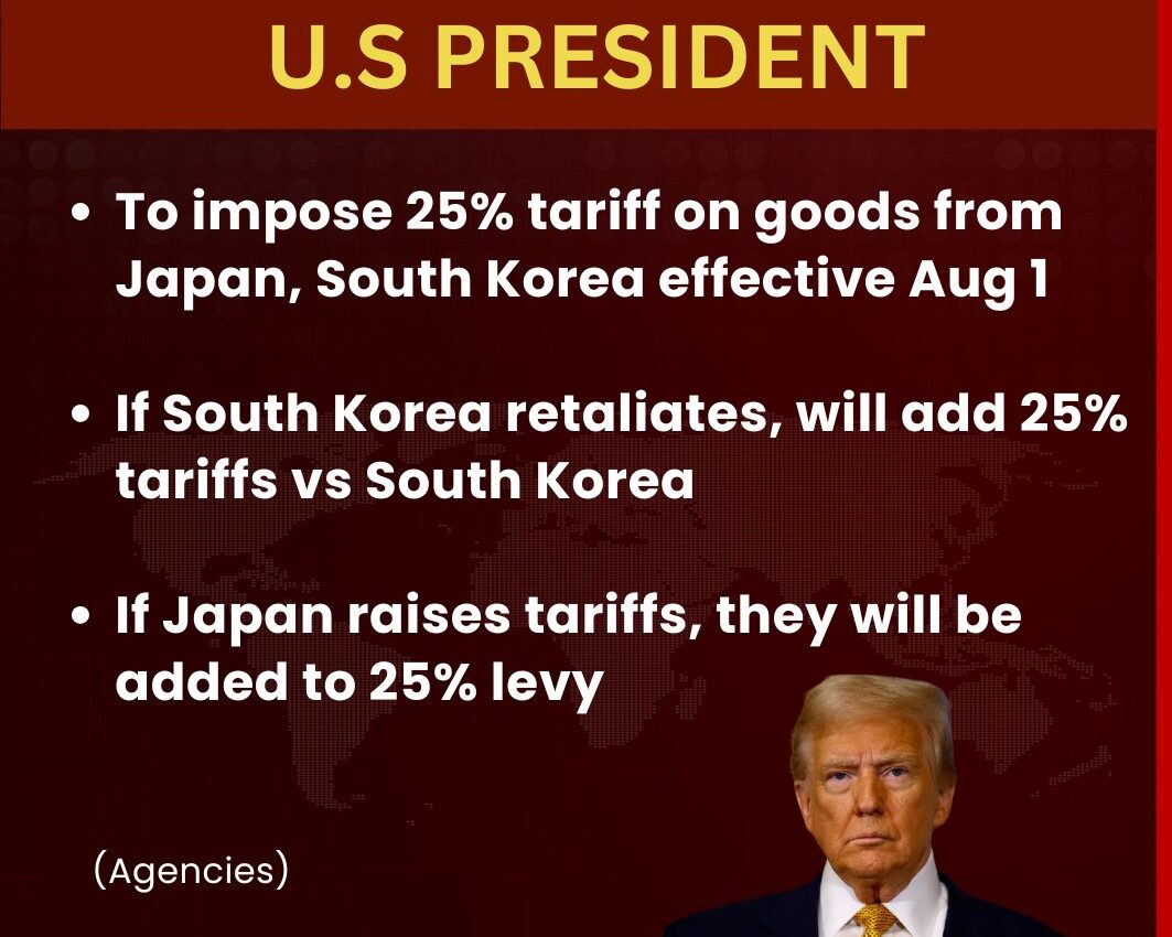 Trump announces tariffs on Japan and South Korea. 25% each.