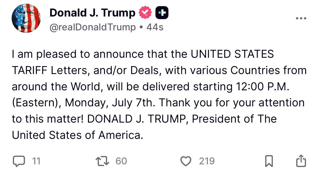 #Tariff-ied yet? Trump’s global game of tax- and -burn !!US President Donald Trump shared tariff letters via social media on Monday that were sent to leaders of the 14 countries. He explained his new tariff plans in them and said the rates could go up or down, depending on how each country’s relationship with the US develops.