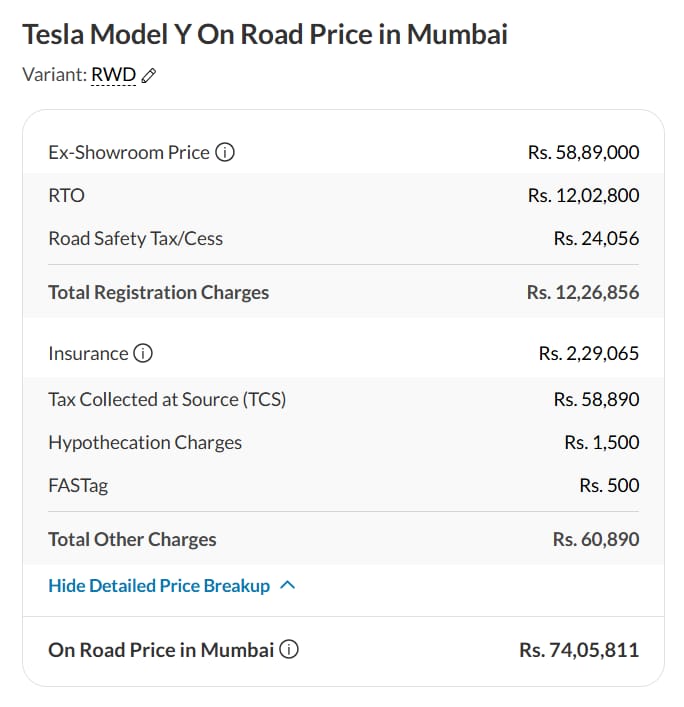 While the rear-wheel drive model will be priced at approximately 60.1 lakh ($70,000), the long-range variant at approximately 67.8 lakh ($79,000). These prices are significantly higher than the prices in other markets.
